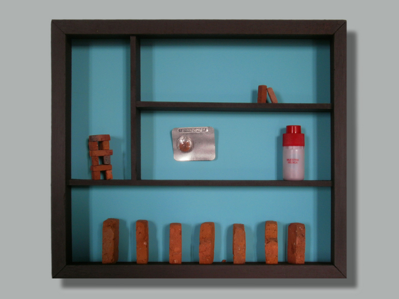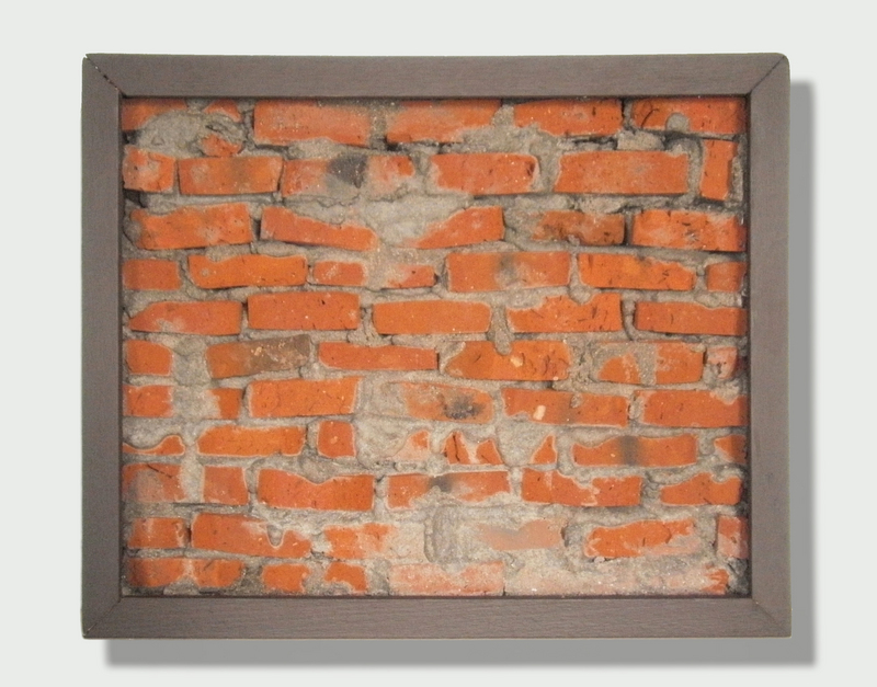 Caja de madera sin vidrio Ladrillos tallados, cemento y arena Medidas:28 cm x 22 cm x 4,5 cm 2012